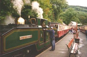 The famous Ffestiniog Railway brought me further in the hills (or should I say mountains?). The small railtrack was made in the previous century to get slate stone from the hills to the coast. On top of the hill cars were filled with slate stone. Then they pressed the car down, and because the railroad is only going downwards nothing was needed to get them to the coast. To get the cars back upon the hill they used horses and later trains. 2 Engines still exist: the "Prince" (still running on this track) and the "Princess" (nowadays located in a railway museum). During the journey I left the train at 2 places: in Tan-Y-Bwlch (beautiful lake up in the hills) and in Tanygrisiau (another lake, made to get water energy). Back in Blaenau Ffestiniog there was a lot of rain, so I went into a local pub. Wow, what a crowd! Oh, an important football match just begun... In the evening I went back to Dolwyddelan YH. Monday 26 August