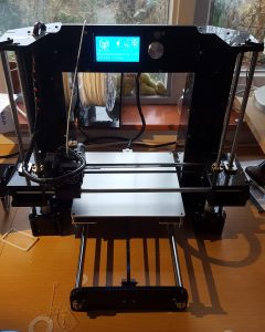 Our new printer is an entry level machine: the Anet A6. You can buy a kit on the web for about $300. It took me almost a day to assemble it, but in the early evening the first prints appeared on the print bed. The third print was actually the first successful one. Most succeeding prints were successful at once, although I’m still playing around with all the settings. Calibrating the print bed is one of the most important things to care about, it took me quite some patience to correctly adjust it.