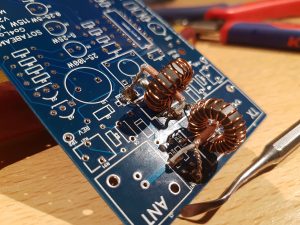 The building instructions start with building the bridge, especially the coils you have to wind yourself, and two small pieces of PTFE coax that run them. The pictures display the correct placement and give you a clue about the construction. However, the documentation on how to wind the coils is lacking details: it doesn’ t tell you in which direction the secondary part has to be wound (which is not critical b.t.w.) and people might not know what “23 windings” means. If you don’t know either… it’s the number of times the wire goes through the hole of the FT240-43 coil. It’s always important to give good instructions on winding coils, otherwise beginners will end up with questions or cancel their project.
