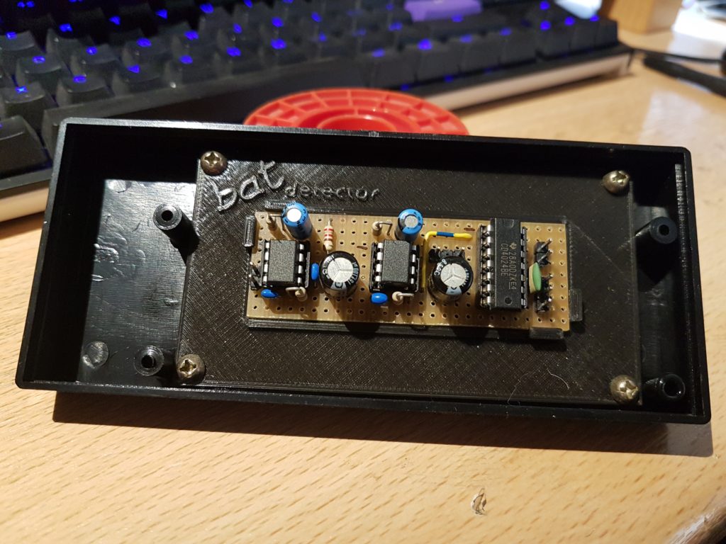 Now the detector is finished, it was time to put it to the test. The first evening however the weather was not great, with a bit of a drizzle. The second evening it was dry and nice weather, and while walking the dog I noticed two bats flying around. I immediately went back inside to grab my detector and a moment later the first chirps came out of the earpiece. What a relief!