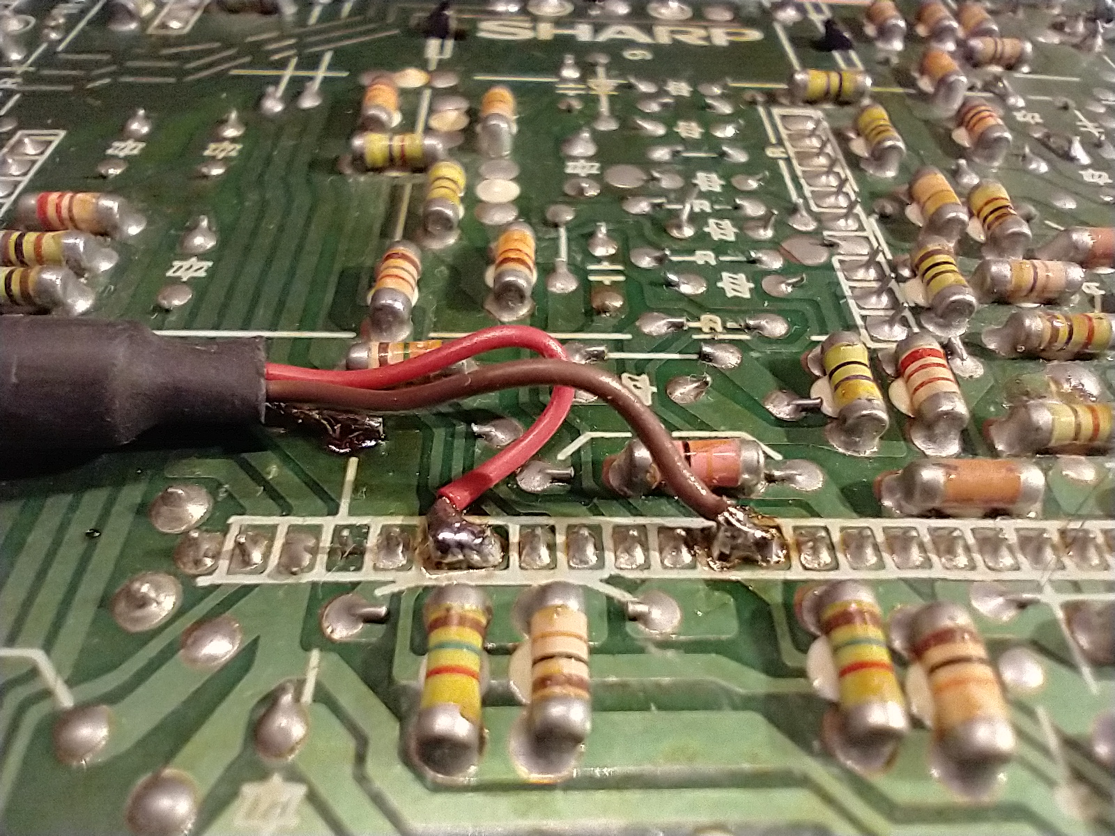 Recently I saw a video of a guy modifying his old boombox using the bluetooth board mentioned above. I absolutely liked the idea and decided to try the same with my old Sharp. Since the cassette player was out of use, I deciced to wire that ‘input’ to the bluetooth board.