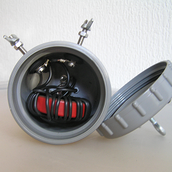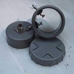 That was the easy thing. Now you have to build a solid case. I found a simple solution, by using some 75mm PVC elements which are normally used for draining. One part is normally used to put in a T-junction and let you access the pipe. It has a screw top with rubber inside. The second is a simple end point to close a pipe. Both parts can be glued together (not yet, do it later) to form solid and dry case.