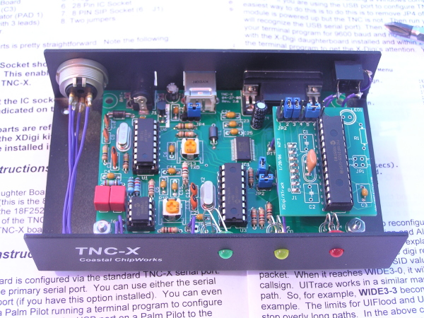 The Dutch Amateur Radio Emergency Service (DARES) is currently setting up a messaging system for emergency communications. Email is sent over radio using the good old AX.25 protocol. Part of this project is the TNC-X, a simple packet radio modem with a USB interface. I am trying to get rid of those RS-232 boxes, so having a TNC with a USB interface is one more step in that direction. Hans PA3GJM managed to get lots of radio amateurs together to buy 100 TNC-X modems. I was one of them.