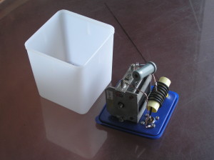 The antenna impedance is too low to connect to the coax. So I builded a simple matching box holding a T-filter. The box itself was originally made to hold food to put in your freezer. But these boxes are also very handy and waterproof to hold a matching circuit.