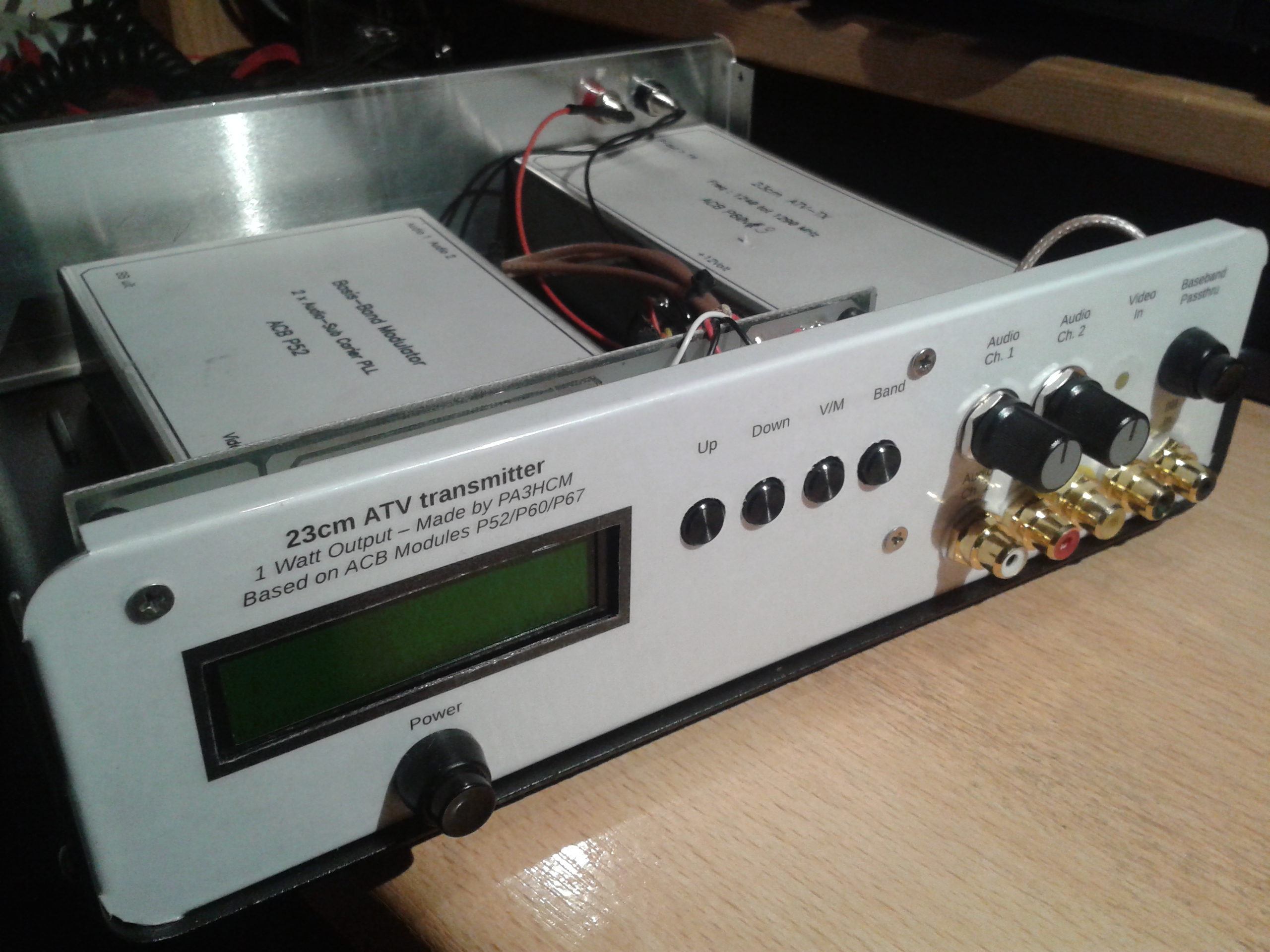 Although I was already able to receive the local ATV repeater PI6ATV, it has been a wish for about 8 years to be able to uplink too. So I once bought a couple of modules from PE1ACB that would allow me to do so. However, due to lack of time and other priorities the modules lost my attention and ended up on some shelf. Since I started my new job I have more spare time, which I spend (among other things) on this fantastic hamradio hobby. So then I remembered those modules. I designed a front panel and bought a case, switches and connectors.