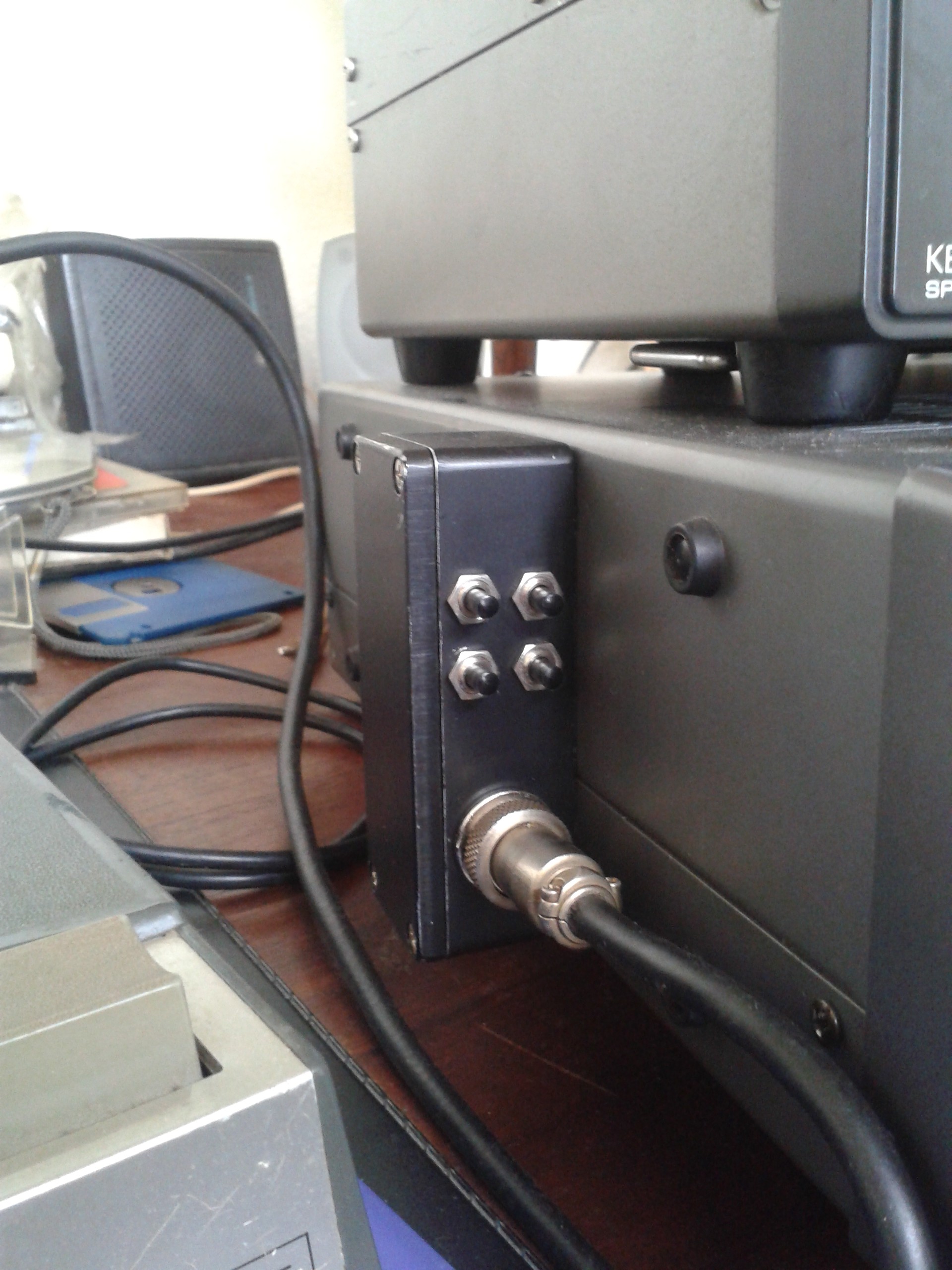 Tjalling PE1RQM built the first version for Adrian PA0RDA to operate his TS-2000. He built a small box out of copper clad. The box was not mounted anywhere, so when moving the microphone the box simply followed its movements. After a couple of years the box collapsed due to bouncing around the desk all the time. So Adrian needed a more solid one.