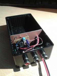 My TV camera generates stereo audio, like most cameras do. However, my local ATV repeater only supports mono audio. So to transmit a nice audio signal with my TV pictures, I needed a way to convert the stereo signal to mono.
