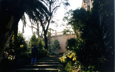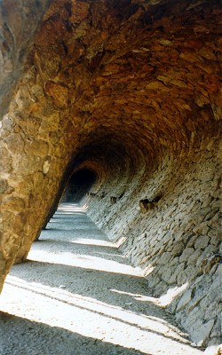 | Parc Guell - In dit door Gaudi ontworpen park is het goed vertoeven. Deze mooie gang ligt net links van de grote trap, en geeft een hele aparte sfeer. |