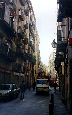 | - De straten van Barcelona zijn smal, en als de zon niet recht de straat inschijnt is het er zelfs redelijk donker. Diverse mensen hebben op hun balkonnetje een kanarie in een kooi, in bijna iedere straat hoor je er dan ook wel eentje zingen. |