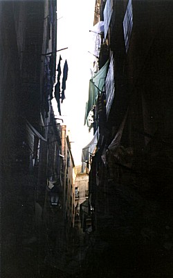 | - Nog een smal donker straatje. Ze hebben er honderden hier! |