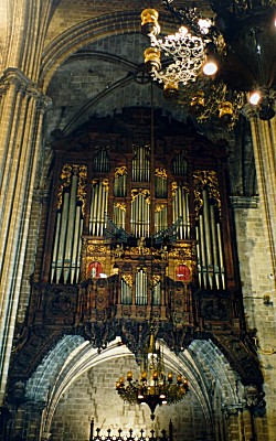 | Cathedral del Catalunya - In het midden van de kathedraal hangt dit schitterende orgel. Ik had het best eens willen horen. |