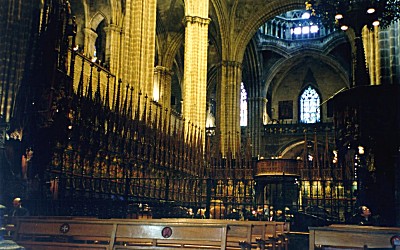 | Cathedral del Catalunya - Het koor is prachtig, met veel houtsnijwerk. |