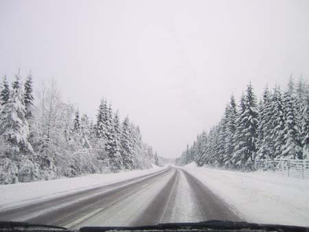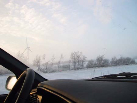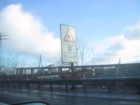 Bij Hamburg worden we gewaarschuwd voor gladheid. Die waarschuwing was niet overbodig... even later was de weg spekglad!