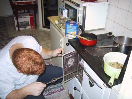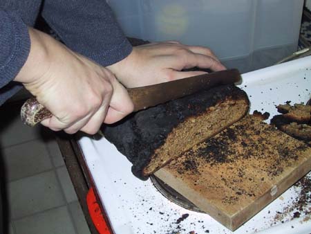 Dat leuke oventje in huis moest uiteraard ook maar eens uitgetest worden. In het gastenboek vonden we een recept om brood te bakken. Maar ja, de temperatuur van de oven heb je niet helemaal in de hand...