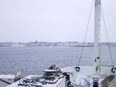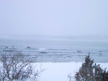 Tijd om het eiland te gaan verkennen. We zien vooral sneeuw, sneeuw en... sneeuw.