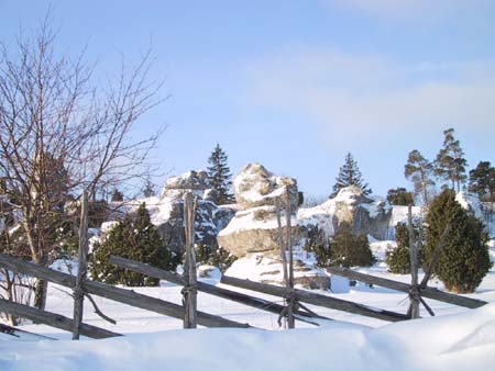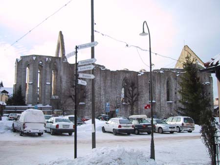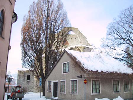 De hoofdstad van Gotland is Visby (spreek uit: wiesbuu). In het oude stadscentrum zie je overal restanten van oude kerken. In de zomer zijn ze overgroeid met rozen, maar nu met sneeuw.