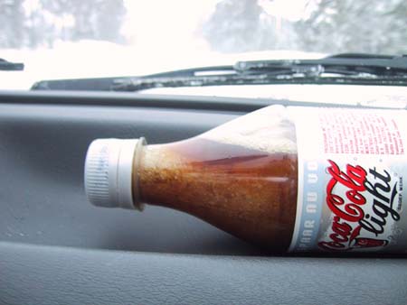 Tip: laat 's winters nooit flesjes cola in je auto liggen.