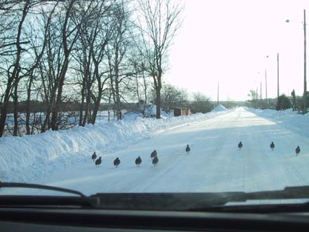 En dan ineens loopt er een kudde patrijzen over de weg.