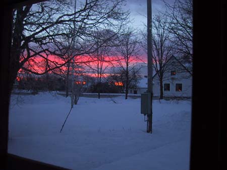 Het huisje bij zonsondergang. In het noorden kun je in de winter iedere dag urenlang genieten van de zonsondergang!