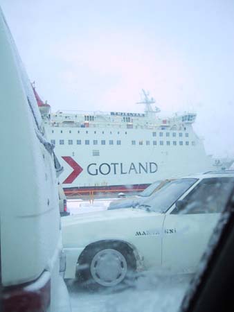 Eindelijk bij de boot naar Gotland! Maar... zo rustig als het op land is, zo stormachtig schijnt het op zee te zijn. De boot heeft een flinke vertraging.
