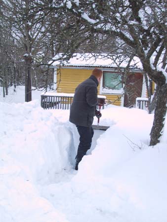 En dan moet er gewerkt worden. Er ligt nogal wat sneeuw, maar je wilt toch wel eens het huis uit. Dus wat oefening is het sneeuwscheppen kan geen kwaad.