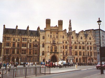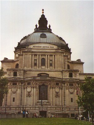 Nee, dan is het klokkenspel van de Westminster Abbey veel boeiender. Een ware kakafonie van klokgeluiden dat iedere keer net iets anders klinkt, maar toch steeds ongeveer hetzelfde. Je zou denken dat de klokken in een circel hangen, in willekeurige volgorde, en dat er in het midden iemand rondzwaait met een klepel en daarbij de klokken een voor een raakt. Toen ik het geluid voor het eerst hoorde, moest ik gelijk denken aan het klokgelui op het album "Gaudi" van The Alan Parsons Project. In Barcelona (de stad van de beroemde architect Antonio Gaudi) heb ik dat geluid nooit gehoord. Maar nu snap ik het: Parsons had tijdens de opnames van dat album wat klokgeluiden nodig, en is toen gewoon de Londense studio uitgelopen met een bandrecorder! Terug naar deze plek. Naast alle beroemde gebouwen hier staan er ook een aantal die in geen enkele toeristische gids staan vermeld. Best jammer, want "The Sanctuary" en de "Methodist Central Hall" verdienen ook een eervolle vermelding op de lijst van fraaie gebouwen van Londen. Wat "The Sanctuary" is? Ik zou het niet weten, het staat in geen enkele gids...
