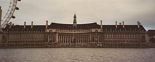 Ik ben al bij les 5 geloof ik, en dan kun je les 1 inmiddels wel dromen. Wat zou er dan in zo'n vervolgles moeten zitten? Volgens mij is dat o.a. de County Hall. Iedere cursist die les 1 doet, keert dit gebouw de rug toe, om een foto van de Houses of Parliament te maken, met de Thames ervoor. Maar de reisleider zou ze stuk voor stuk om moeten laten draaien, zodat ze de County Hall zien. Want hier werd tot 1986 besloten wat er allemaal moest gebeuren om het "Greater London" nog greater te maken. Op deze plek kwam de Greater London Council (GLC) bijeen, dat was een soort raad van wijze heren die het beleid bepaalde van de stad. Maar ja, Thatcher vond het allemaal niet zo geweldig, zij vond dat de GLC een "bureaucratisch bolwerk van dogmatisch socialisme" was (nee, dat zijn dus niet mijn woorden). De GLC zit er niet meer, maar nog steeds wemelt het hier van de ambtenaren. Verder wordt het gebouw sinds enige tijd ook bewoond door vele waterdieren, omdat hier nu het London Aquarium is gehuisvest. Misschien dat die vissen ervoor zorgen dat dit gebouw weer in les 1 wordt behandeld?