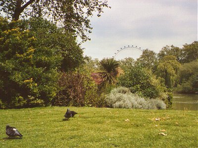 Een toeristisch gezin in St James's Park gaat op een bankje zitten om de zojuist verkregen illegale hotdogs te nuttigen. Zoonlief wil net de eerste hap nemen, als zijn ogen ineens bijna uitpuilen: "Mam! Mam! Mam! Kijk, een eekhoorn! Een eekhoorn!". Een wild dier was allang gevlucht, of had de jongen aangevallen. Maar de eekhoorn (van achteren naderen er inmiddels nog twee) komt snel op de hotdog-family af. Zoals gezegd, het zijn net de duiven op de dam, dus ze hoeven maar eten te ruiken en ze zijn er als de kippen bij. Nadat de eerste broodkruimels bemachtigd zijn, begint de familie nu stukjes brood te gooien. Nu is de beer los: uit alle hoeken van het park verschijnen de pluizige beestjes en komen als hongerige wolven op het gezin af. Nee, niet alleen de vele attracties, hotels, pubs en restaurants profiteren van het toerisme, ook de dierenwereld pikt een graantje mee van deze welvaart.