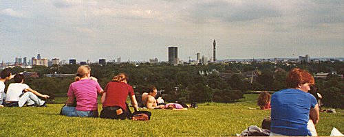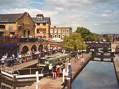 De wandeling naar dit panorama was ook bijzonder. Ik ben uit de metro gestapt bij Camden Town. Toen ik het station uitliep, was ik lichtelijk verrast! De winkelstraat hier is allesbehalve normaal (wat is eigenlijk "normaal" in dit land?). De winkels lijken meer op marktkramen, de helft van de waren staat op straat en hangt aan de deuren en muren. Een markt is hier trouwens ook. De aangeboden waar bestaat vooral uit trendy schoenen, leren jassen en spijkerbroeken. Het oogt allemaal nogal alternatief, dus leuk. "Anders dan anders" zou een goede vriend van mij zeggen. Vanaf de stuw ben ik vervolgens een stuk langs Regent's Canal gelopen. Dit is een prachtig stuk om te lopen. Over het kanaal varen smalle bootjes, waaronder de "Canel Bus". Daarna ben ik dus in noordelijke richting naar Primrose Hill gelopen. De plannen waren destijds om hier een paleis te bouwen, maar dat is uiteindelijk nooit gebeurd. Nu kun je hier genieten van het mooie uitzicht, op de stad en op de jongeren die hier in het gras zitten en liggen. Leicester Square