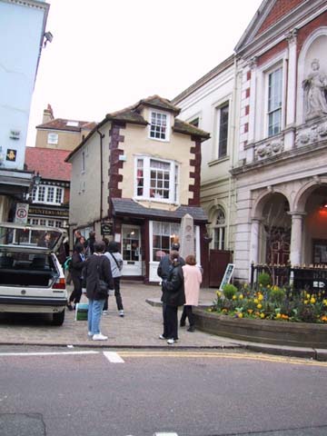 Nog zo'n bijzondere pub. Het gebouw op zich is al markant door zijn tapse vorm, maar ook de de monnik boven de deur en het grote huisnummer geven de gevel een opvallend uiterlijk.