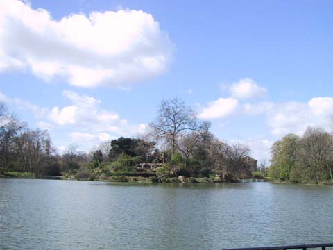 Battersea Park. London kent vele parken, en dit is een van de minder bekende. Op het terras kun je, onder het genot van een ijsje, genieten van dit mooie uitzicht op de grote vijver. Aan de andere kant (niet op deze foto) staat de "Battersea Cathedral", de restanten van een oude energiecentrale. Dit opvallende gebouw ziet eruit als een soort omgekeerde tafel. De "poten" zijn vier grote schoorstenen. Voor de kenners: dit gebouw staat op de voorkant van het album "Animals" van Pink Floyd.